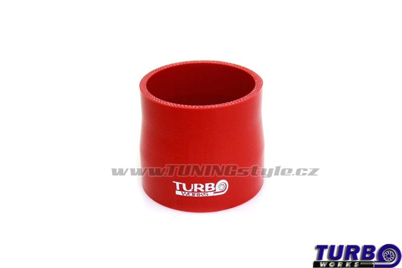 Silikonová hadicová redukce rovná od firmy TurboWorks. Hadice nejvyšší kvality se 4-mi vrstvami polyesterové textilie o tloušťce stěny 5mm. Testováno do tlaku 7 barů při teplotách od -50 do +260 stupňů C. Silikon nejvyšší kvality odolný proti působení různých olejů, maziv, phm a pod. Díky těmto parametrům ideální pro montáž např. intercoolerů či pro sání.