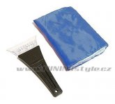 Škrabka s plastovým břitem s textilní rukavicí. Rukavice je z vnitřní strany doplněna kožíškem který zamezuje prochladnutí ruky, při čištění zamrzlého skla a výrazně tak zvyšuje konfort obsluhy. Vnitřní strana rukavice s "kožíškem". Technická data rozměry rukavice16 x 23 cmrukavicetextil s kožíškemšíře škrabky11 cmmateriál škrabkyplast Celý popis