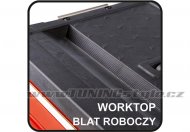 Modul má ploché víko, které lze použít jako pracovní desku. Kromě toho je modul vybaven pohodlnou, protiskluzovou rukojetí, postranními zvedacími rukojeťmi a plastovými rohy.