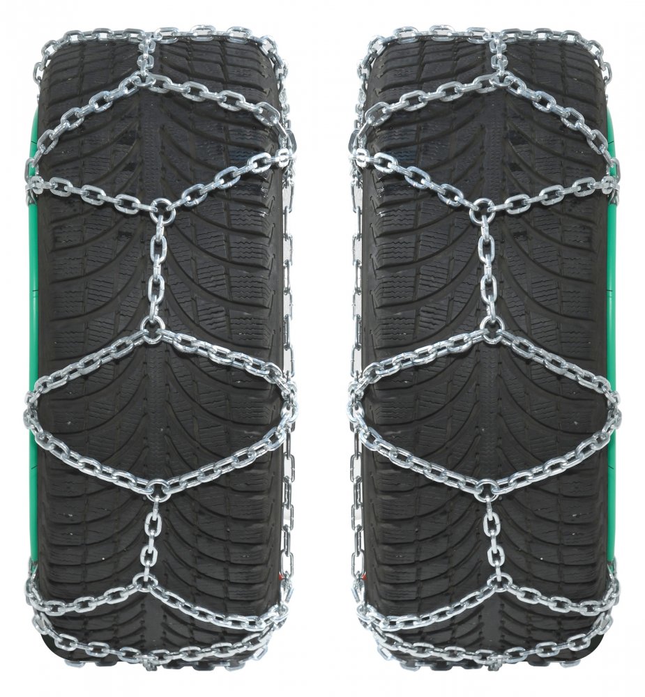Sněhové řetězy, pro SUV/VAN do hmotnosti 7500 kg, splňující veškeré vyžadované evropské normy. Lze použít i pro dodávky a obytná vozidla. Čtyřhranné články 27 x 16 mm jsou uzpůsobeny proti protáčení řetězu, čímž výrazně zvyšují záběr kola. Síla materiálu 4,5 mm zajišťuje vysokou pevnost, odolnost a dlouhou životnost. Řetězová síť je uspořádána ve speciálním tvaru „X“, zaručujícím klidnou a poho... Celý popis