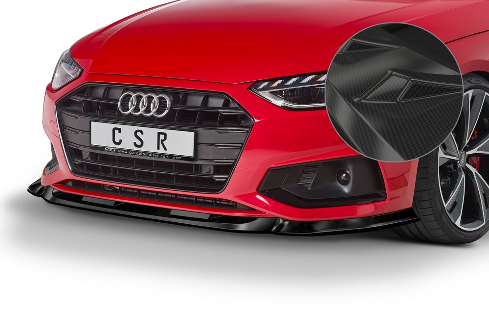 Spoiler pod přední nárazník CSR CUP - Audi A4 B9 19- carbon look lesklý
