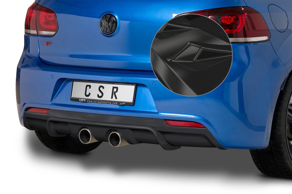 Zadní spoiler CSR pod originální zadní nárazník - difuzor Pouze pro modely VW Golf 6 R 2009-2012 Pouze verze R Sportovní vzhled Spoilery jsou zhotoveny z kvalitního ABS plastu v provedení: S - černý matný povrch - není určen k lakování C - carbon look lesklý L - černý matný povrch - určen k dalšímu lakování G - černý lesklý povrch M - carbon look matný, struktura Materiál je velmi flexibilní a ... Celý popis