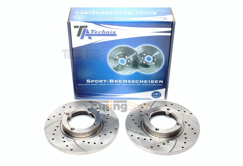 Sada 2ks Zadních sportovních brzdových kotoučů TA Technix Náprava: Zadní Průměr:  236mm Tloušťka/min. tloušťka:12,6mm /9,7mm Průměr vrtání: 107,5mm Rozteč:102mm Šrouby:4x102 Odvětrávané: ano Děrované:ano Drážkované:ano OEM-čísla dílů: 96284392, 96320531, 96455424   Použitelné pro vozy: Daewoo Matiz (KLYA) 0.8,od.09.98 -,38kW,52PS,796ccm Daewoo Matiz (KLYA) 1.0,od.01.03 -,47kW,64PS,9... Celý popis
