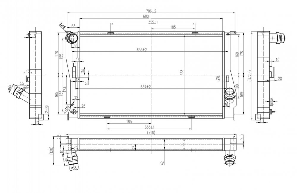 Sportovní chaldič vody určený pro : BMW E92 335D Tloušťka žeber - 50mm Vzhledem k faktu že daný model má více druhů chladičů prosíme před objednáním porovnat s technickým nákresem, který se nachází v galerii. Celý popis