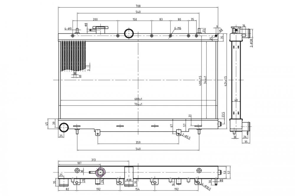 Sportovní chaldič vody určený pro : Subaru Impreza GDA/GDB WRX 7-9 Tloušťka žeber - 40mm Vzhledem k faktu že daný model má více druhů chladičů prosíme před objednáním porovnat s technickým nákresem, který se nachází v galerii. Celý popis