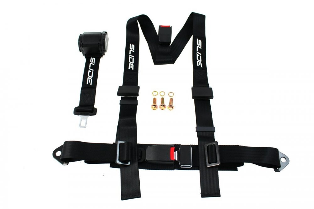 Sportovní bezpečnostní pásy SLIDE 3-bodové, Vyrobené z tkaniny a částečně z plastu. Šířka pásu - 2" Po zapnutí částečně chrání před poškozením těla v případě havárie nebo prudkého brždění. Pevné uchycení pasažerů se skeletem kabiny auta tvoří bezpečnostní klec s dopasovanými bezpečtnostními pásy ,umožňuje uživatelům vozidel ztratit rychlost při kolizi s vozem .Díky tomu jsou zrychlení (zp... Celý popis
