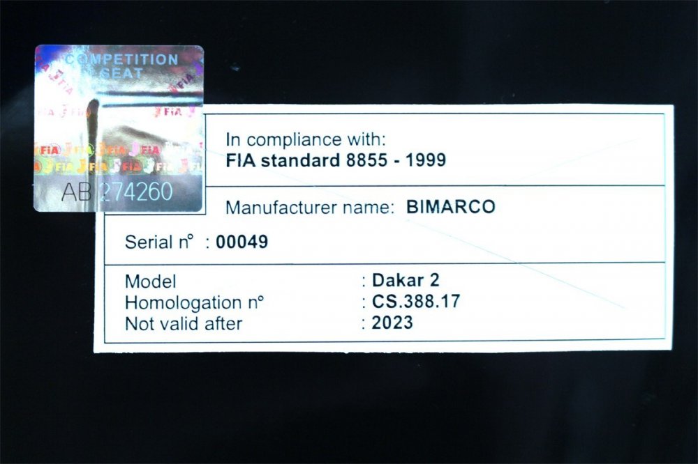 Profesionální sportovní sedačka Bimarco Dakar s homologací FIA.