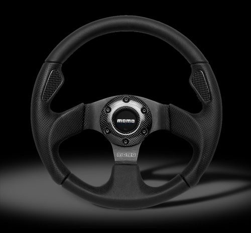 Sportovní volant firmy Momo ze série Jet s karbonovými vložkami o průměru 320 mm. Volant má Homologaci TUV. Odsazení věnce : 42mm Materiál : černá kůže Celý popis