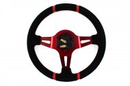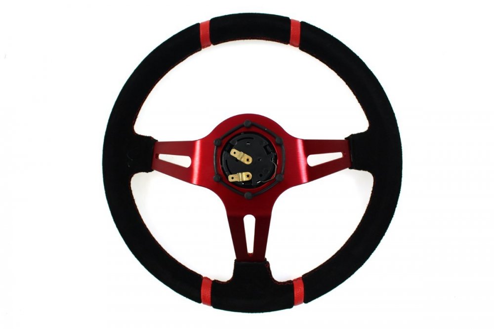 Sportovní volant SLIDE 350mm Semiš s červenými pásky