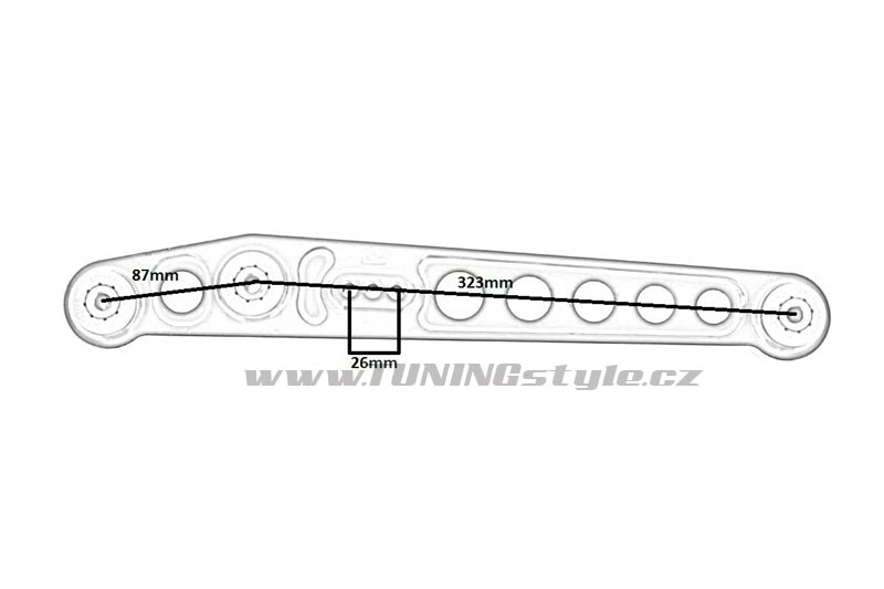 Rameno zadní nápravy Výrobek se montuje při snížení vozu, kdy kola strácí své sériové úhly.