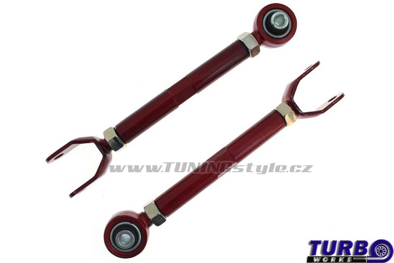 Stavitelné ramena zadní napravy. Produkt vhodný pro použití při snížení vozu, kdy kola strácí své seriové odklony. Díky regulaci lze nastavit víc úhlů. Celý popis