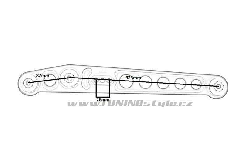 Rameno horní zadní nápravy Výrobek se montuje při snížení vozu, kdy kola strácí své sériové úhly.