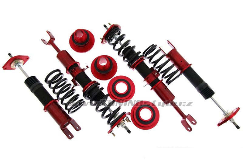Snížení: od -80mm do +20mm Díky zabudované 24 stupňové regulace tvrdosti lze podvozek nastavit pro vlastní pohodlí , lze nastavit extrémně tvrdý až tvrdost,která se přibližuje sériovému nastavení. Obsahuje: 4 Pružiny 4 Závity Klíče (pro regulaci výšky) Návod Celý popis