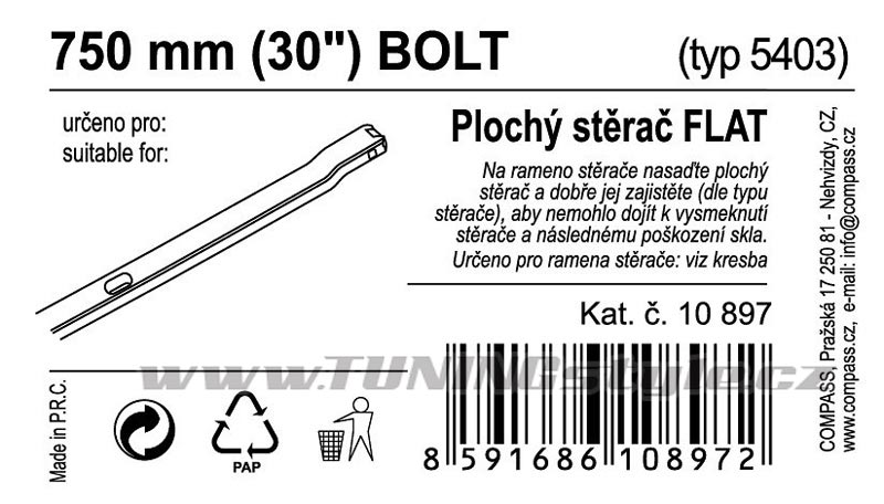 • Stěrač FLAT BULK (BOLT) 30"/750mm