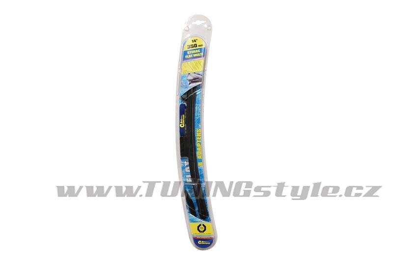 Plochý stěrač nové konstrukce, který zajišťuje důkladné a rovnoměrné stírání. Speciální uchycení, díky kterému lze pomocí přiložených adaptérů použít tento stěrač pro řadu různých zakončení ramen stěračů. Balení á 1 ks ve speciálním "otevíracím" blisteru. Tento typ plochého stěrače je osazen gumičkou s černým grafitem, umožňuje i její výměnu.