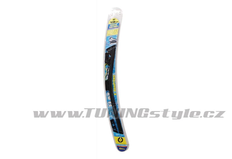 Plochý stěrač nové konstrukce, který zajišťuje důkladné a rovnoměrné stírání. Speciální uchycení, díky kterému lze pomocí přiložených adaptérů použít tento stěrač pro řadu různých zakončení ramen stěračů. Balení á 1 ks ve speciálním "otevíracím" blisteru. Tento typ plochého stěrače je osazen gumičkou s černým grafitem, umožňuje i její výměnu.