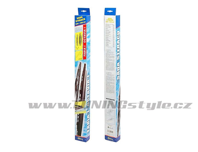 Sada dvou stěračů (řidič + spolujezdec) rozdílných délek, optimalizovaná pro nejběžněji používanou kombinaci velikostí stěračů. Stěrač určený k montáži před řidičem se spoilerem. Stěrač určený k montáži před spolujezdcem je prohnutý. Zajišťuje dokonalé stírání i na zakřivené části skla na straně spolujezdce. Kvalitní vícevahadlová nýtovaná konstrukce ramena stěrače. Balení obsahuje stěrač 530 mm (21") + stěrač 480 mm (19") + univerzální adaptéry pro montáž.