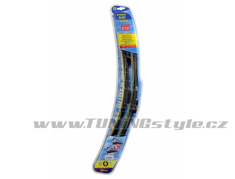 Vysoce kvalitní pružný člen plochého stěrače zajišťuje stejnoměrný tlak grafitového břitu v celé jeho délce, což zamezuje rozmazávání nečistot a vytváření pruhů.Tento typ plochého stěrače je osazen gumičkou s černým grafitem, umožňuje i její výměnu.