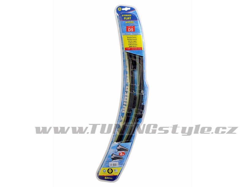 Vysoce kvalitní pružný člen plochého stěrače zajišťuje stejnoměrný tlak grafitového břitu v celé jeho délce, což zamezuje rozmazávání nečistot a vytváření pruhů.Tento typ plochého stěrače je osazen gumičkou s černým grafitem, umožňuje i její výměnu.