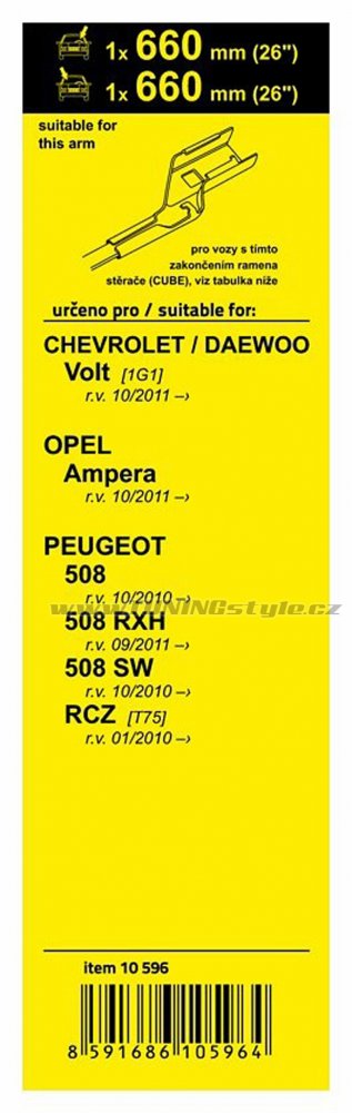 Sada dvou plochých stěračů FLAT (řidič + spolujezdec) se speciálním uchycením. Délky stěračů a systém uchycení na ramínko jsou přizpůsobeny vybraným vozům (viz tabulka použití).Vysoce kvalitní pružný člen plochého stěrače zajišťuje stejnoměrný tlak grafitového břitu v celé jeho délce, což zamezuje rozmazávání nečistot a vytváření pruhů.určeno pro vozy:značkarok výrobyChevrolet / Daewoo Volt [1G... Celý popis