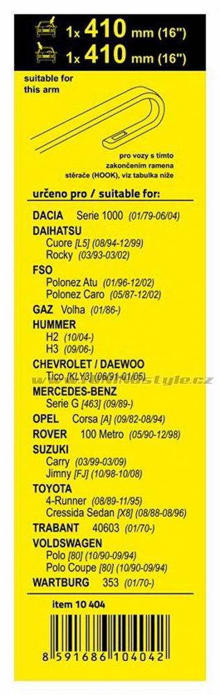 | určeno pro vozy: | |