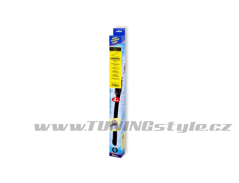 Sada dvou plochých stěračů FLAT (řidič + spolujezdec) se speciálním uchycením. Délky stěračů a systém uchycení na ramínko jsou přizpůsobeny vybraným vozům (viz tabulka použití).