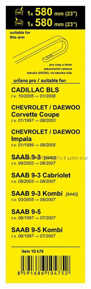 Sada dvou plochých stěračů FLAT (řidič + spolujezdec) se speciálním uchycením. Délky stěračů a systém uchycení na ramínko jsou přizpůsobeny vybraným vozům (viz tabulka použití).Vysoce kvalitní pružný člen plochého stěrače zajišťuje stejnoměrný tlak grafitového břitu v celé jeho délce, což zamezuje rozmazávání nečistot a vytváření pruhů.určeno pro vozy:značkarok výrobyCadillac BLS10/05 - 01/08Ch... Celý popis