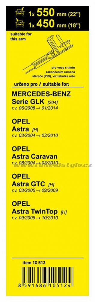 Sada dvou plochých stěračů FLAT (řidič + spolujezdec) se speciálním uchycením. Délky stěračů a systém uchycení na ramínko jsou přizpůsobeny vybraným vozům (viz tabulka použití).Vysoce kvalitní pružný člen plochého stěrače zajišťuje stejnoměrný tlak grafitového břitu v celé jeho délce, což zamezuje rozmazávání nečistot a vytváření pruhů.určeno pro vozy:značkarok výrobyMercedes-Benz Serie GLK [20... Celý popis