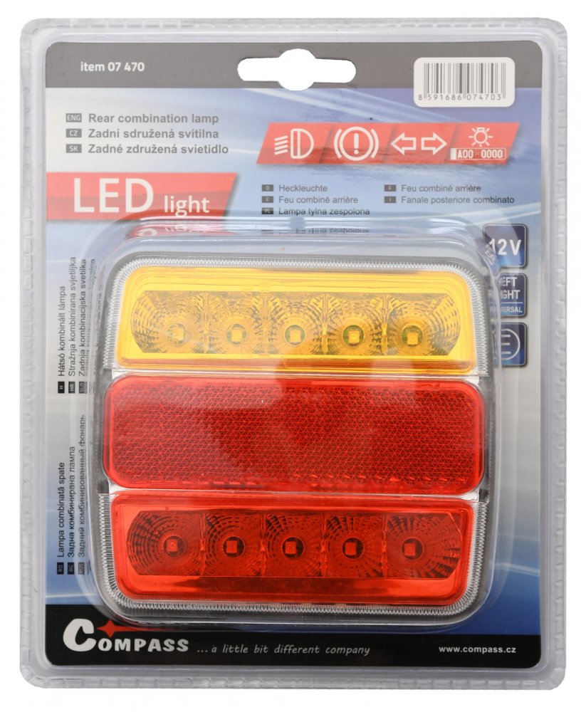 Sdružená koncová LED svítilna s napájením 12V. Svítilna je opatřena obrysovým, brzdovým, směrovým světlem a osvětlením SPZ. Univerzální použití zajišťuje možnost připevnit na libovolné místo na levou i pravou stranu.Použitím LED osvětlení se prodlužuje životnost a snižují se nároky na spotřebu elektrické energie oproti běžným 12V žárovkám. Technická data rozměry světla9,5 x 10,5 x 3,5 cm napáje... Celý popis