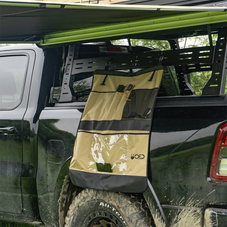 Keeps items organised and protected5 slim pockets2 wide pockets1 mesh pocket1 transparent pocketExtra pocket on the back, as big as whole bagEasy accessEasy to clean, hard to rip materialAttaches easily to most roof top tents by sliding o-rings into t-slotsAttaches easily to most surfaces thanks to included carabiners2x O-ring for t-slots in tent's frame Celý popis