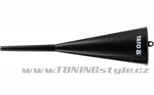 Polypropylenový trychtýř pevný, jednodílný. Vhodný pro nalévání benzinu, nafty, olejů, ředidel a jiných tecnických kapalin. Celková délka 455 mm, průměr nálevky 130 mm. Celý popis
