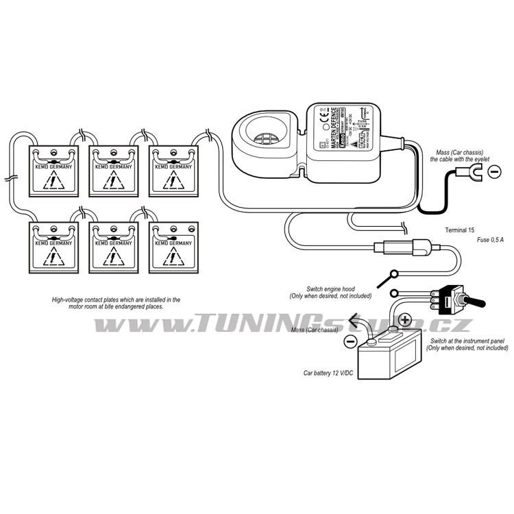 Zařízení vysílá ultrazvukový signál s frekvencí 22 kHz. Navíc obsahuje 6 vysokonapěťových destiček, které jsou kondenzátorem nabité na 300 voltů. Tyto vysokonapěťové destičky se instalují pod kapotu do motorového prostoru na místa při vodní, vzduchové hadice, startovací kabely a podobně. Při dotyku s plochou, dostane zvíře elektrický šok, který ho okamžitě zaplaší. Vysokonapěťová destička se automaticky znovu nabije. Extrémně nízká spotřeba energie (<0.005), při poklesu napětí baterie pod 11,5 V se zařízení automaticky vypne (aby se při delší odstávce vozidla nevybila baterie).