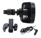 Napájení 12 V ze zásuvky autozapalovače. Ventilátor disponuje dvěma rychlostmi a díky kulovému kloubu je snadné větrák natočit prakticky jakýmkoliv směrem.