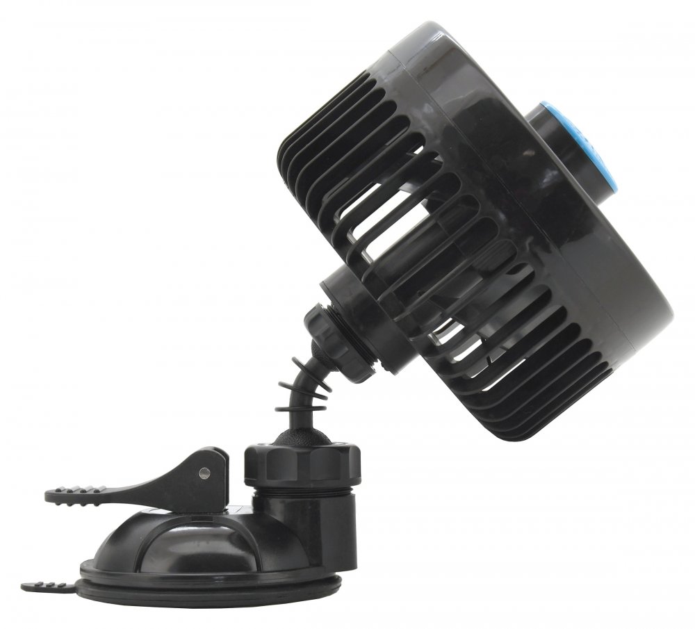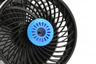 Napájení 12 V ze zásuvky autozapalovače. Ventilátor disponuje plynule volitelnou rychlostí otáček a vypínačem ionizátoru. Díky dvěma kulovým kloubům je snadné větrák natočit prakticky jakýmkoliv směrem.