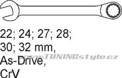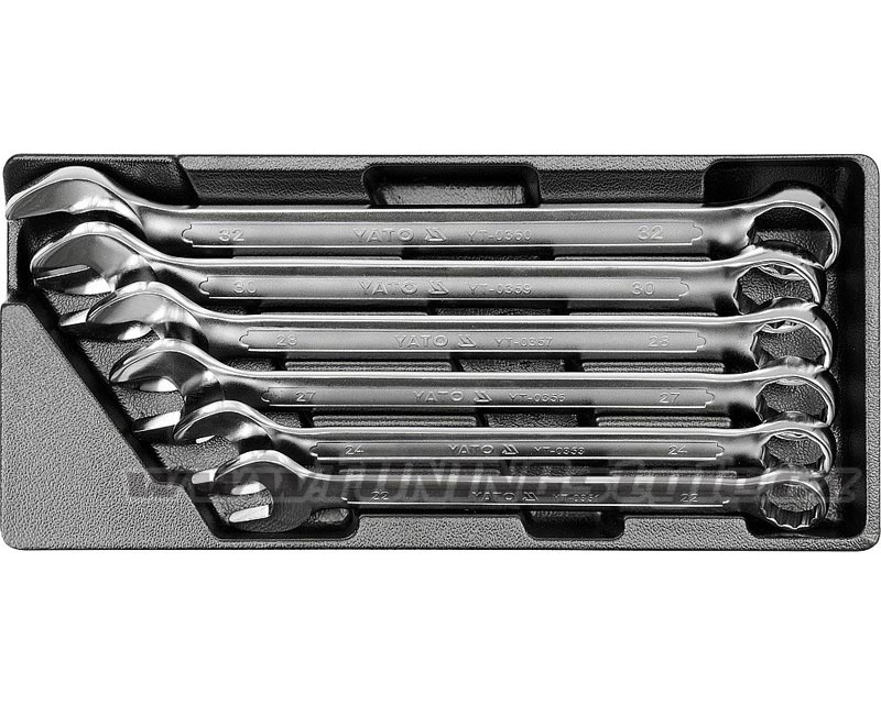 Sada 6 kusů očkových klíčů z CrV oceli. Klíče jsou přehledně srovnány ve vložce do šuplíku z PVC.Obsah balení: Rozměry: 22, 24, 27, 28, 30, 32 mm Celý popis