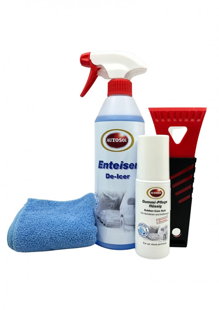 V mrazivých zimních měsících využijete vše ze zimní sady. Rozmrazovač skel De-Icer Vám zpříjemní mrazivé ráno a urychlí nepříjemné škrabání námrazy na skle auta. Gumové těsnění na dveřích auta ošetříte přípravkem na ochranu gumových ploch. Vyhnete se tak nepříjemnému přimrznutí dveří.