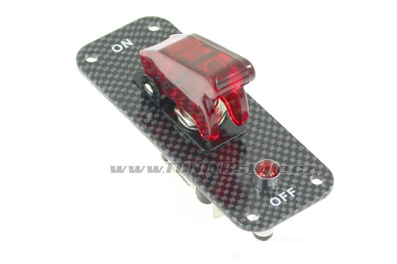 Vypínač na panelu s karbon designem s pojistkou s indikací Celý popis