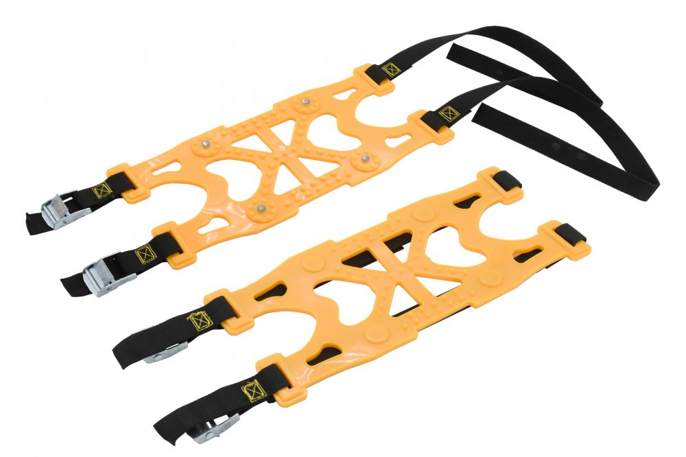 Univerzální vyprošťovací pásy pro nouzové vyproštění ze sněhu i náledí. Pásy jsou vhodné pro všechny běžné rozměry pneu (ALU i ocelové disky). Dokonalé upevnění, s rychlou a zároveň snadnou montáží je zajištěna stahovacími pásy s přezkami. Sada obsahuje 2ks pásů pro hnací nápravu. Technická data Sada 2 ks Tloušťka pásu 6 mm + nýty a výstupky Upevnění Přezkami Celý popis