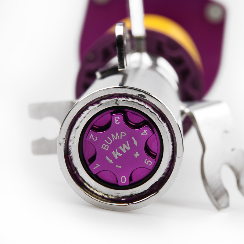Základní nastavení 2-way podvozku KW Clubsport, které je dokonale přizpůsobeno Nordschleife, vám umožňuje individuálně přizpůsobit vaše sportovní auto požadovanému nastavení pouliční pneumatiky díky četným možnostem nastavení. Samostatně nastavitelné tlumiče s odskokem a kompresním stupněm s technologií „TVR-A“ a „TVC-A“ umožňují rozsáhlé nastavení tlumičů. Je tedy snadné přímo ovlivnit chování řízení, směrovou stabilitu, přilnavost pneumatik a jízdní vlastnosti pro bezpečnou ovladatelnost na hranici jízdní dynamiky. V závislosti na typu vozidla jsou dvoucestné podvozky KW Clubsport dodávány s hliníkovými unibal horními úchyty.