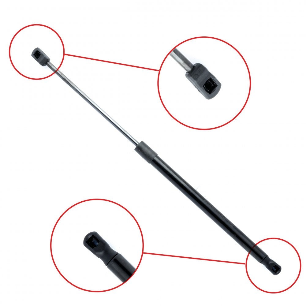 Délka: 500 mm (celková délka vzpěry v otevřeném stavu mezi středy ok) Sila: 470 N Zdvih pístu: 193 mm OE čísla: AUDI 8D9827552F Čísla náhradních dílů: 120069 MAXGEAR 23394 FEBI BILSTEIN 23169 KROSNO 110279 TOPRAN Obsah sady: 1 x plynová pružina / tlumič kufru/zadních dveří