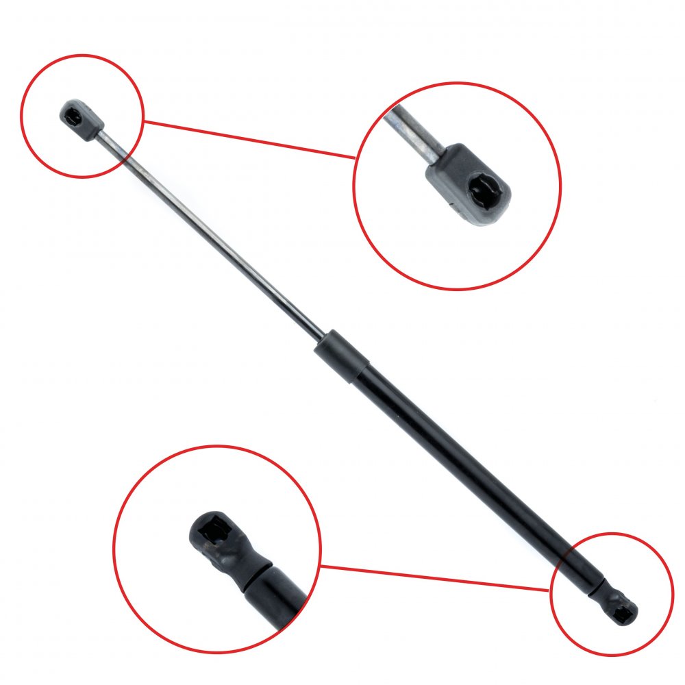 Délka: 480 mm (celková délka vzpěry v otevřeném stavu mezi středy ok) Sila: 550 N Zdvih pístu: 200 mm OE čísla: VW 5M0827550 VW 5M0827550A Čísla náhradních dílů: 34432 FEBI BILSTEIN 8195053 LESJÖFORS 24568 KROSNO Obsah sady: 1 x plynová pružina / tlumič kufru/zadních dveří