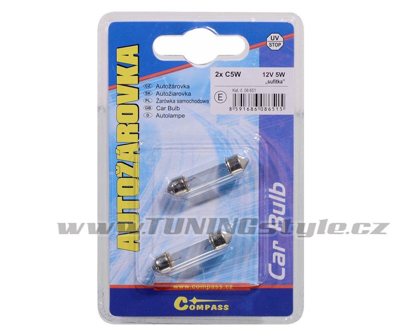 Autožárovka 12V, homologace E, sklo žárovky s UV filtrem - žárovka je vhodná pro všechny druhy světlometů.Balení blister á 2 ks.technická data: typ žárovkyC5Wnapětí12 Vpříkon5Wpatice11x38SV8,5UV filtranohomologaceEsada2 ks Celý popis
