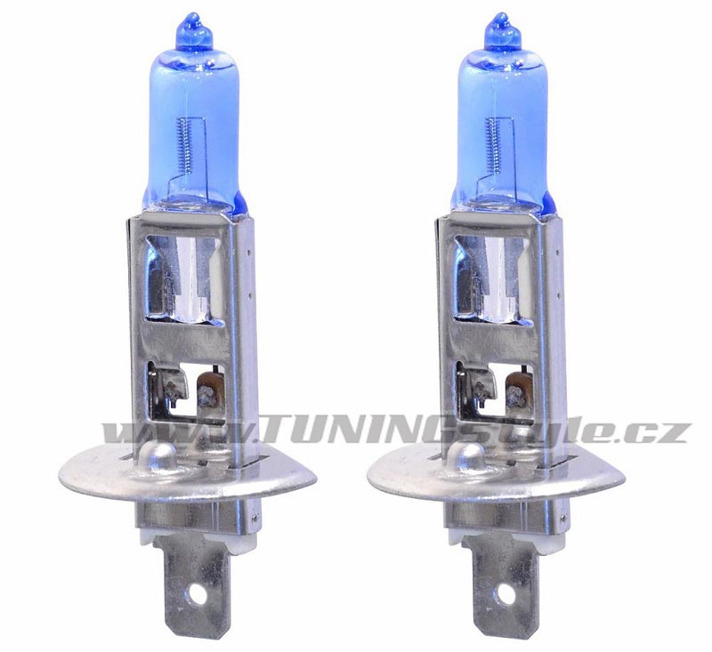 Halogenová žárovka, provedení WHITE LASER s modrým povrchem skla - světlo s nádechem bílé barvy, které vytváří xenonový efekt.