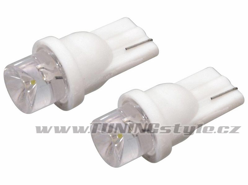 LED dioda s paticí klasické automobilové žárovky - nízká spotřeba proudu, dlouhá životnost. Lze použít jako náhradu klasické autožárovky. technická data: počet LED 1x patice T10 (W2.1x9.2d) napájení 12 V příkon 0,29 W Světelný tok 10 lm barva světla bílá balení 2 ks Tento výrobek není schválen pro provoz na pozemních komunikacích ČR. Určeno pro sportovní a jiné účely. Celý popis