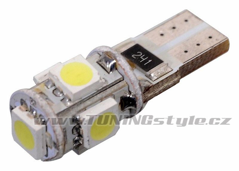 Žárovka 5 SMD LED 12V T10 s rezistorem CAN-BUS ready bílá