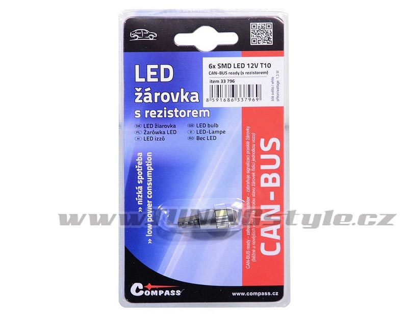 Tato LED žárovka je vybavena funkcí CAN-BUS ready (zabudovaný rezistor), zabraňuje signalizaci prasklé žárovky u novějších automobilů s kontrolou stavu žárovek řídící jednotkou vozu.