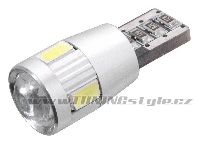 Žárovka 6 SMD LED 12V T10 s rezistorem CAN-BUS ready bílá