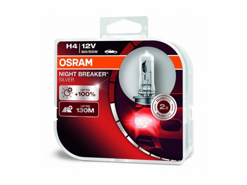 Autožárovky NIGHT BREAKER SILVER nahrazují řadu SILVERSTAR 2.0. Díky neustálému vývoji dosahují excelentního poměru ceny a výkonu. Baňka žárovky je plněna vzácnými plyny pro vyšší výkon. Stříbrný vrchlík dodává autožárovce atraktivní vzhled. Vlastnosti produktu Až o 100 % více jasu 1) Až 130 m dlouhý kužel světla Výhody produktu Lepší viditelnost Více světla umožňuje vidět dál a tím pádem reagovat rychleji. Značky, překážky i rizikové situace mohou být rozeznány dříve. Prémiová kvalita. Vyrobeno v Německu Homologace pro silniční provoz životnost (B3/Tc) při13.2V: 250/400//450/700 hodin (dálkové/tlumené vlákno) světelný tok: 1650/1000 lm ± 15 % 1) Ve srovnání s minimálně požadovanými hodnotami normy ECE R112