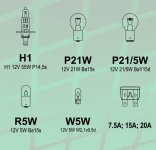 Sada je složena z nejběžnějších nožových pojistek a 12V žárovek.