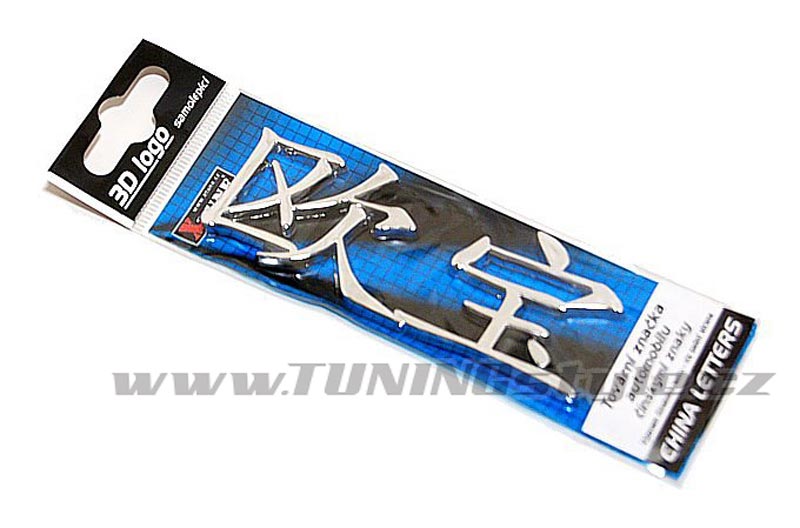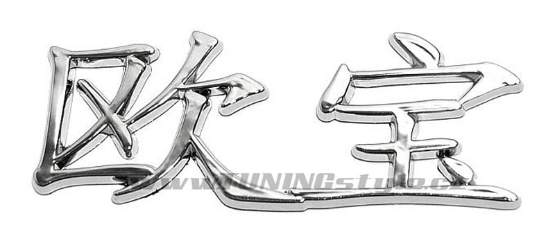 Plastový samolepící emblém řady 3D logo s povrchovou úpravou chrom. Motiv evropské značky automobilů psané čínskými znaky. Řada China letters. Celý popis